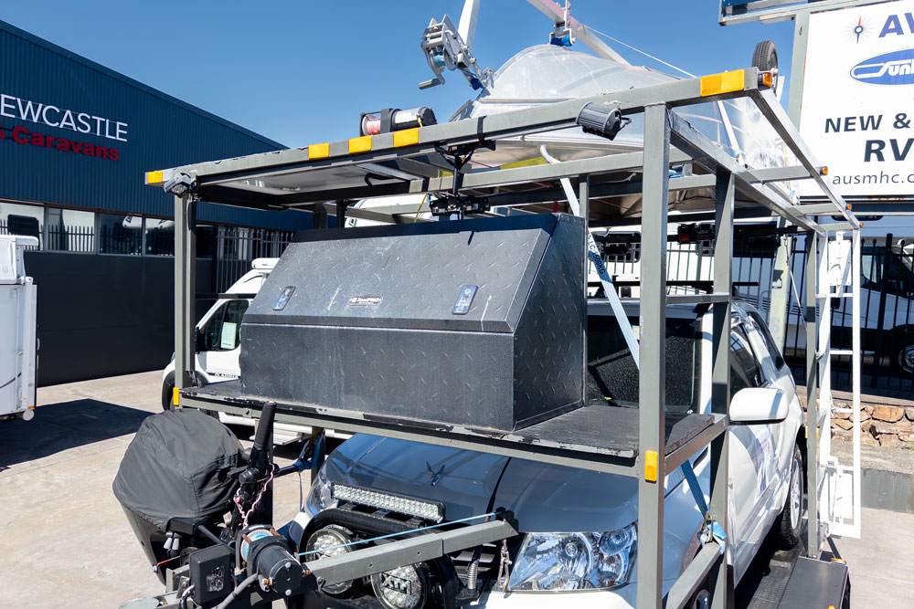 Fully kitted for utility, the trailer is equipped with a battery and solar system, Anderson plugs, high-capacity winch, a dedicated mount for the 20HP Mercury 4 stroke motor and two storage boxes. This isn’t just a trailer; it’s a complete, turn-key adventure solution that offers the freedom to explore land and sea without compromise.