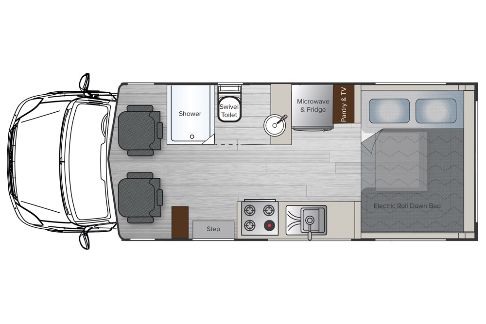 Built on either the Iveco 50C-180 or the more powerful Iveco 50C-210 chassis, the Bruny offers a smooth drive with automatic transmission. Best of all, it can be driven with a standard car license, and its 3500kg towing capacity adds versatility to your journey.