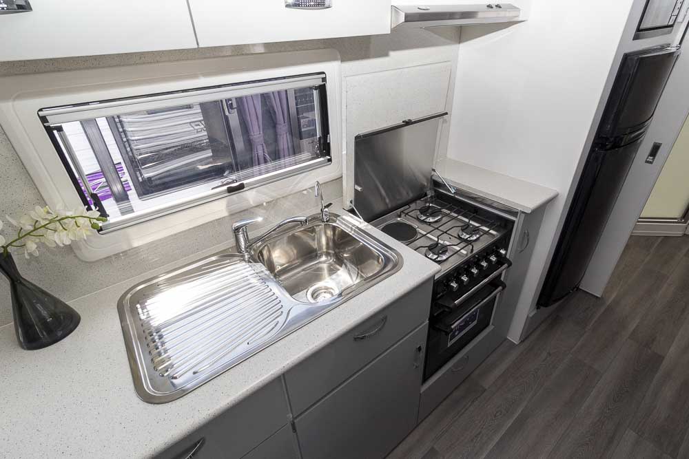 At 21ft the Land Bruiser is a popular layout from Condor Caravan which covers all of the home and travelling essentials. Not only is this new caravan equipped with a larger than normal ensuite bathroom but you’ll also find kitchen, living & dining facilities as well as an island bed.