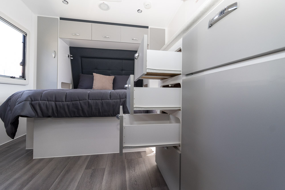 - Dometic double glazed windows with inbuilt privacy & fly screens