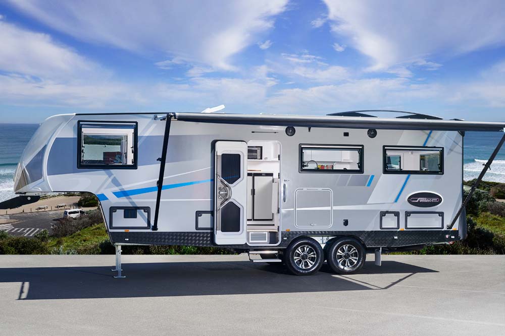 A 5th Wheeler is a happy marriage between the stability of a motorhome and the convenience of having a separate tow vehicle offered by caravanning.