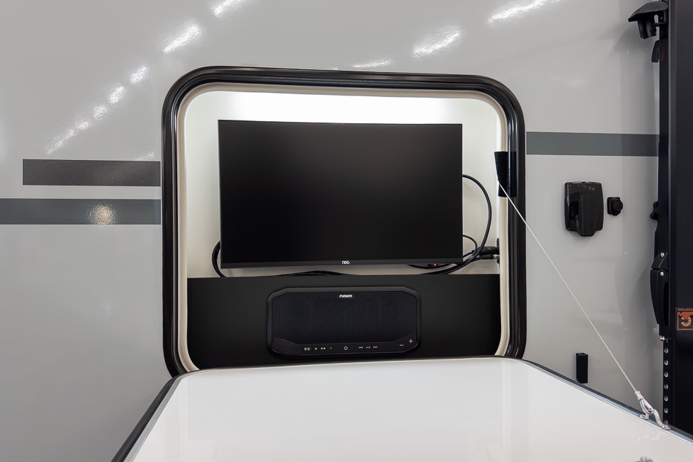 - External entertainment unit with radio, speakers, table, 12V & 240V power & Smart TV