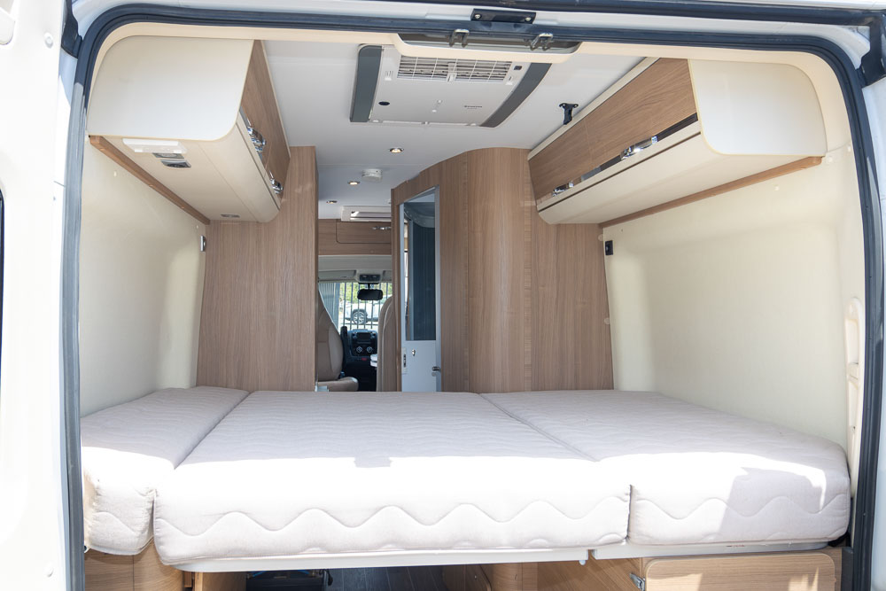 Designed to make life on the road simple, the Adria 600 Twin SP campervan combines car-like driving ease with a highly functional interior layout. Moving seamlessly from the driver’s cabin through to the living, kitchen and sleeping areas, the van offers excellent headroom throughout and a practical 6.5 metre design. With a comfortable front lounge, compact yet well-equipped kitchen, onboard bathroom and a clever rear double bed setup, it’s a campervan that delivers everyday usability without complication.
