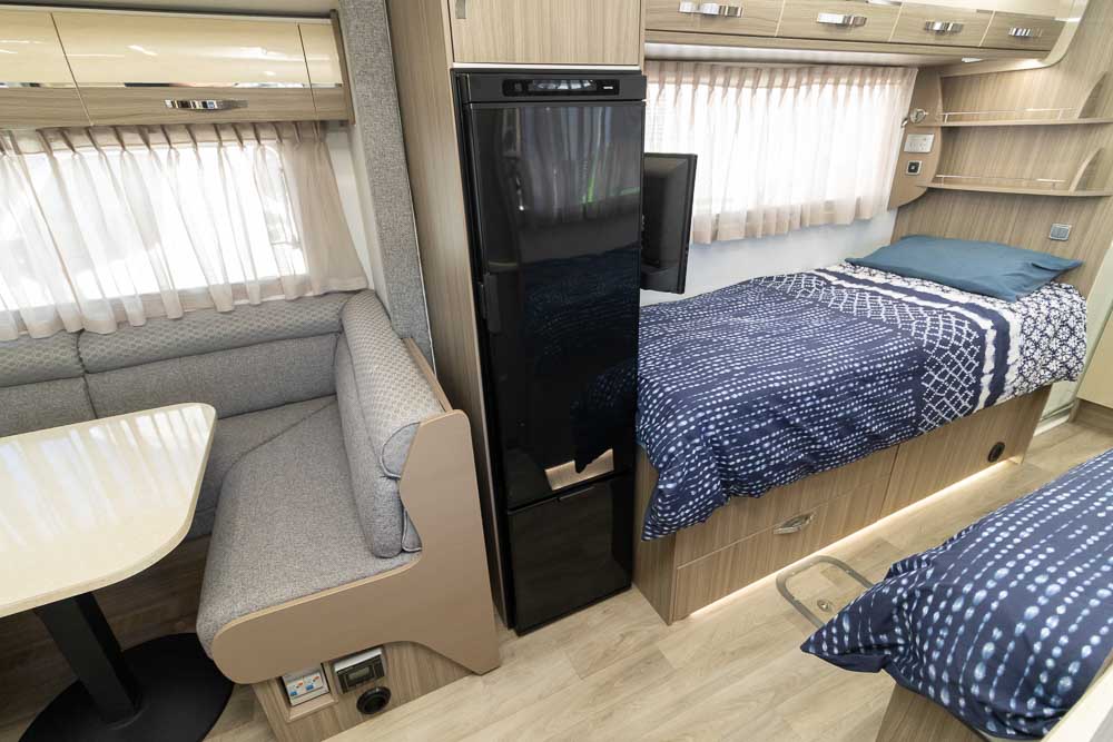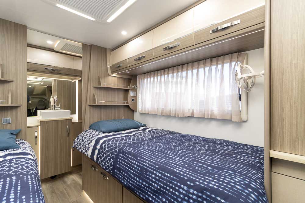 A: The twin beds are ideal for couples who prefer individual sleeping spaces or travellers who value flexibility in the rear layout.