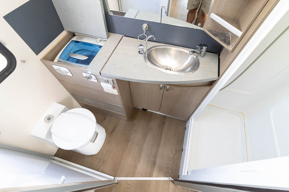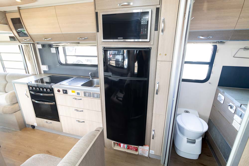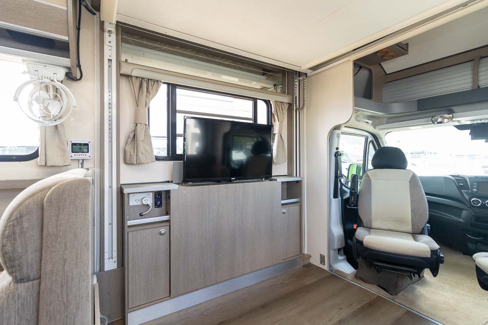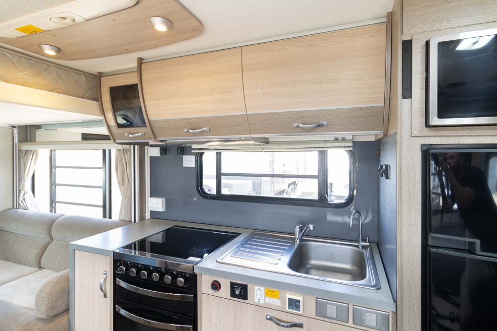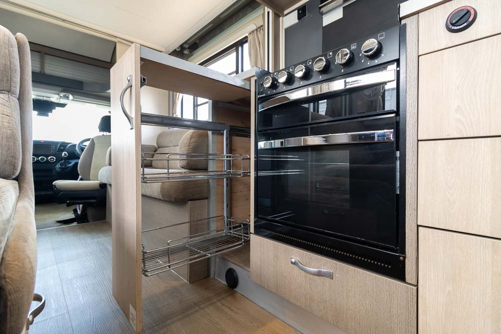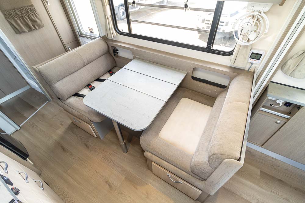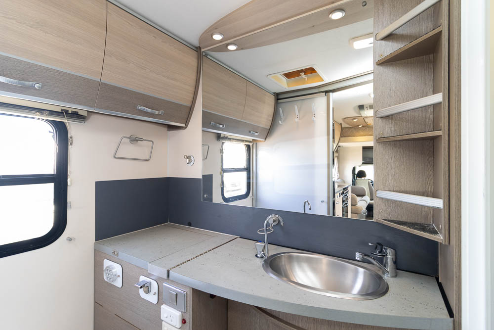This motorhome’s clever dual sitting areas offer real flexibility – ideal for enjoying a morning coffee in one space while someone else relaxes or reads in the other. The well-equipped kitchen and considered storage solutions ensure daily living is easy and enjoyable.
