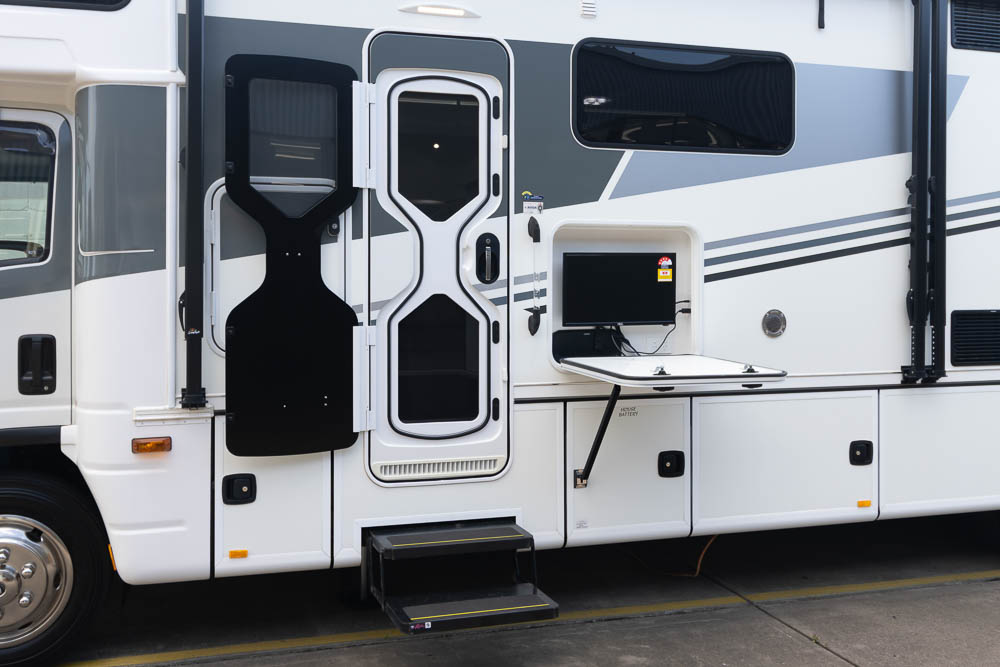 Wherever you travel, entertainment is well covered. The motorhome features three TV/DVD combo units, a Bluetooth home stereo system and an external entertainment unit with stereo for relaxing outdoors. A TV antenna with signal booster helps maintain reception while travelling across the country.