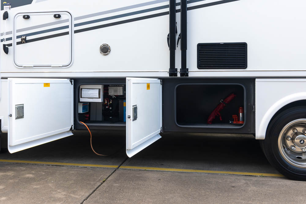 - Dual slide-out motorhome design creating expansive interior living space