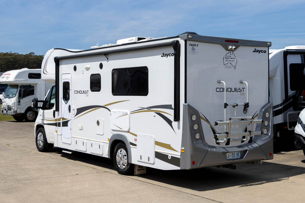 This 2020 Jayco Conquest DX FA25-3 motorhome is in excellent condition with low mileage of just 26,220 kms. Built on the dependable 180hp Fiat Ducato chassis with a 4,495 kg GVM, it is drivable on a standard car licence while providing ample carrying capacity for your adventures.