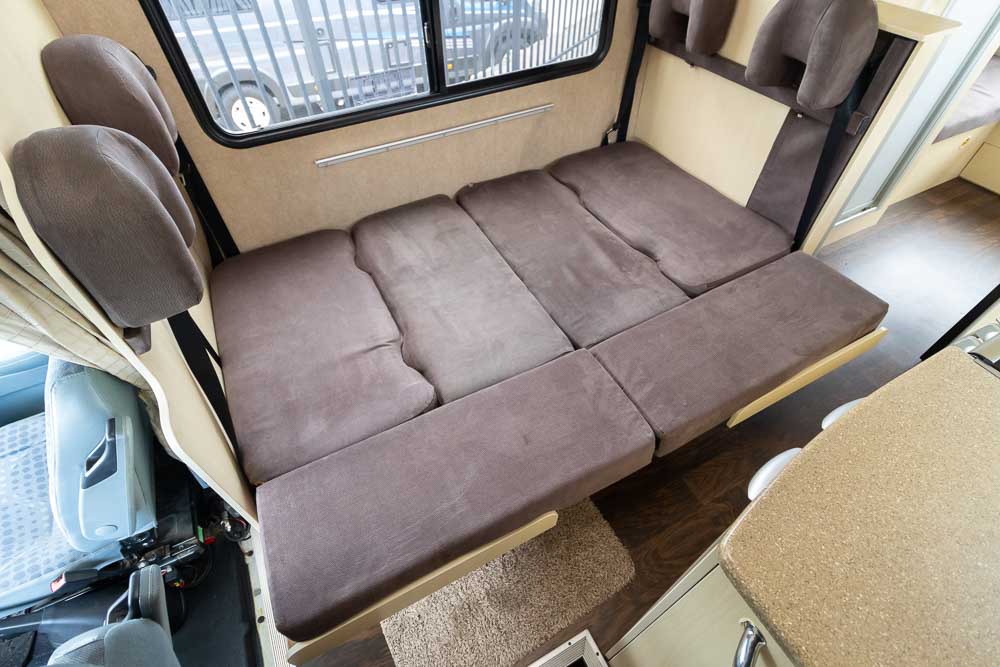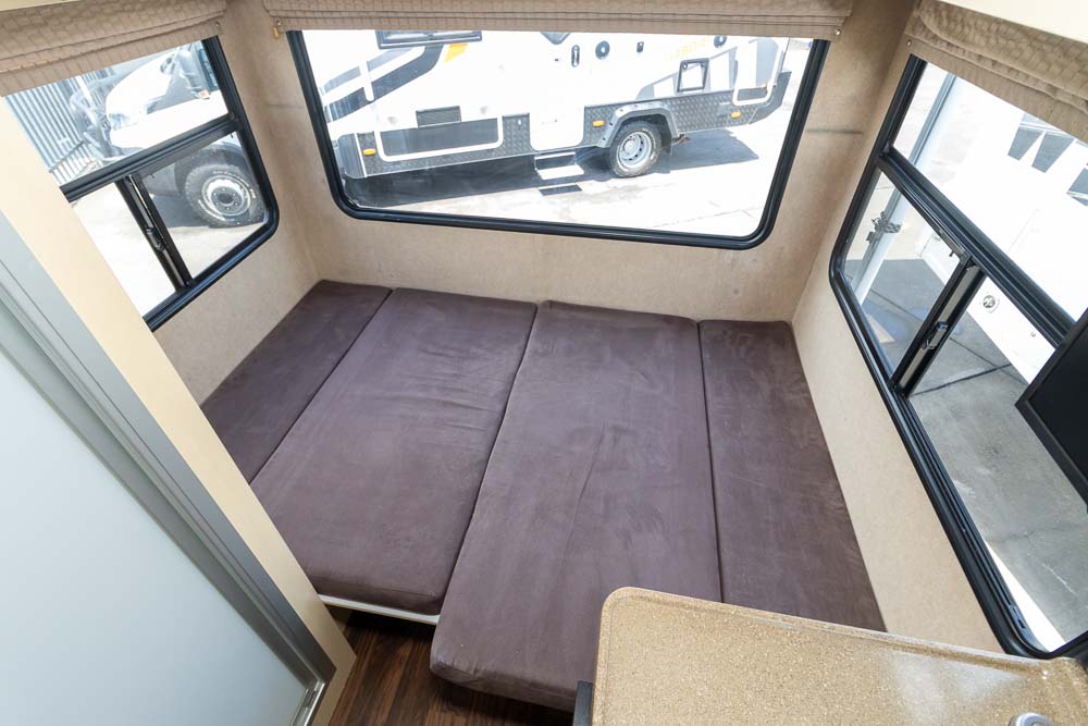 - Front cab bed + U-shaped rear lounge converts to bed