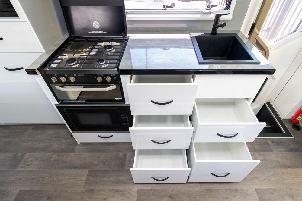 - Fresh water tank + Extra tank – 220L Total