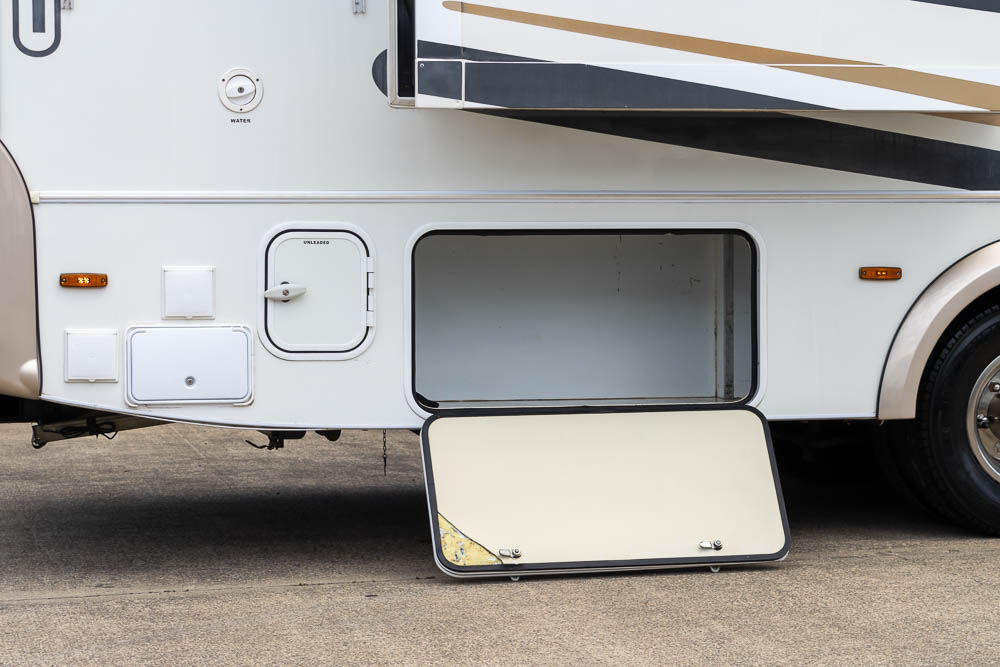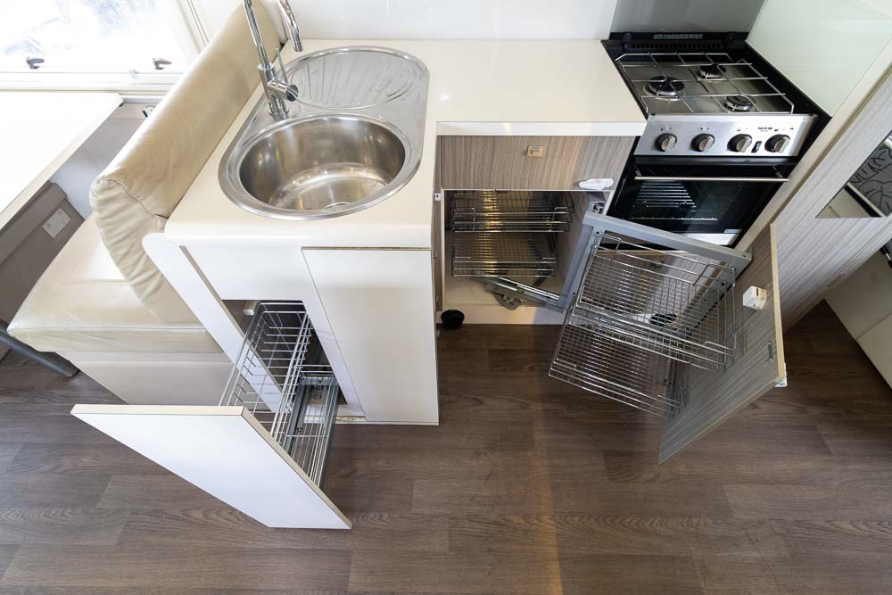 - Slide-out external kitchenette (sink, cooktop & fridge)