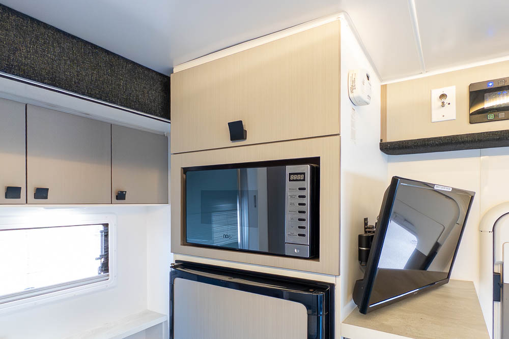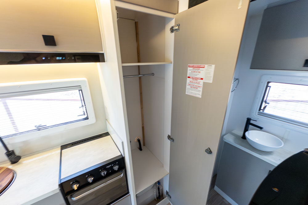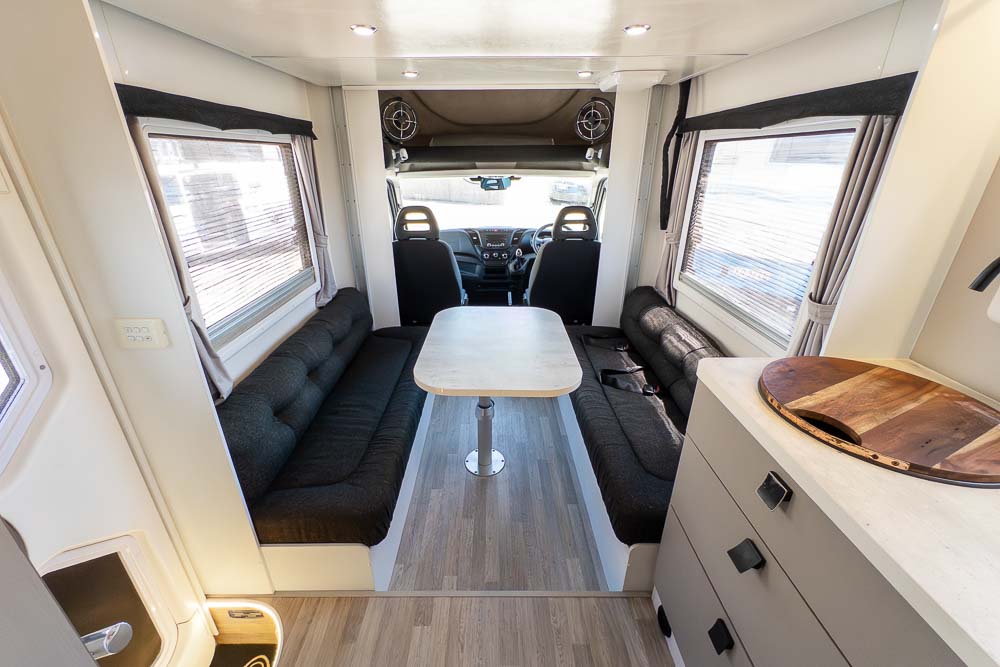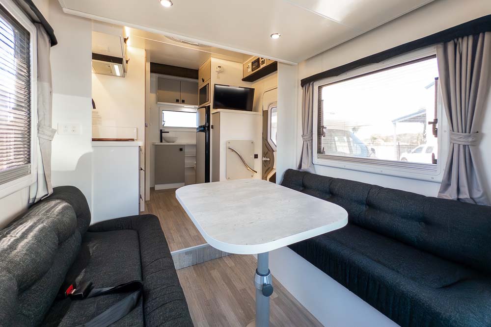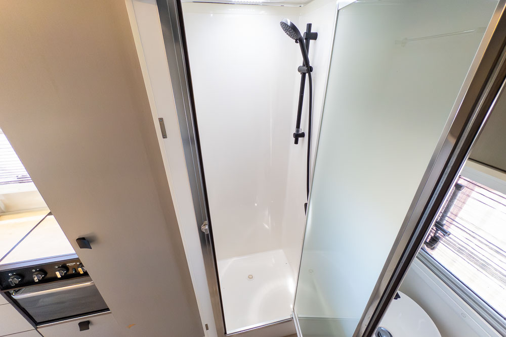 The centrally positioned kitchen is designed to make travel cooking simple, offering good bench space, thoughtful storage and all the essentials within easy reach. Whether you’re prepping quick snacks or full meals, it’s a practical zone that doesn’t intrude on the living or ensuite areas.