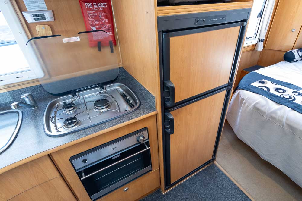 The kitchen is practical and well-equipped, with lids over the stove and sink for extra bench space, a 2-door 3-way fridge/freezer, microwave and ample storage. Opposite the kitchen, the dry ensuite features a separate shower, toilet and vanity for privacy and convenience.