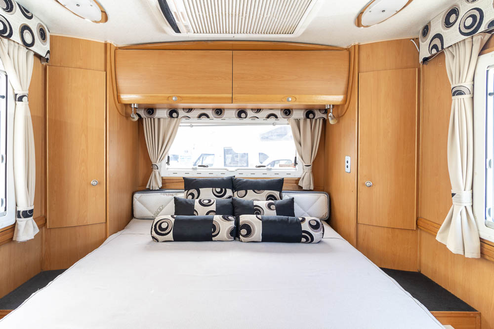 - Rear island bed with storage and TV