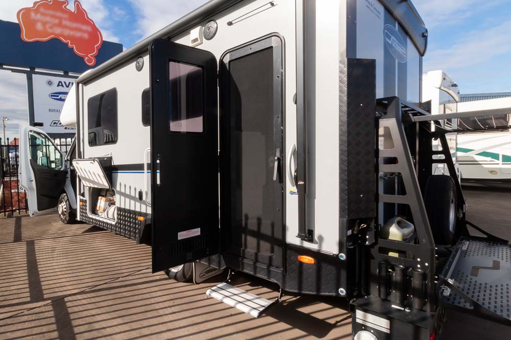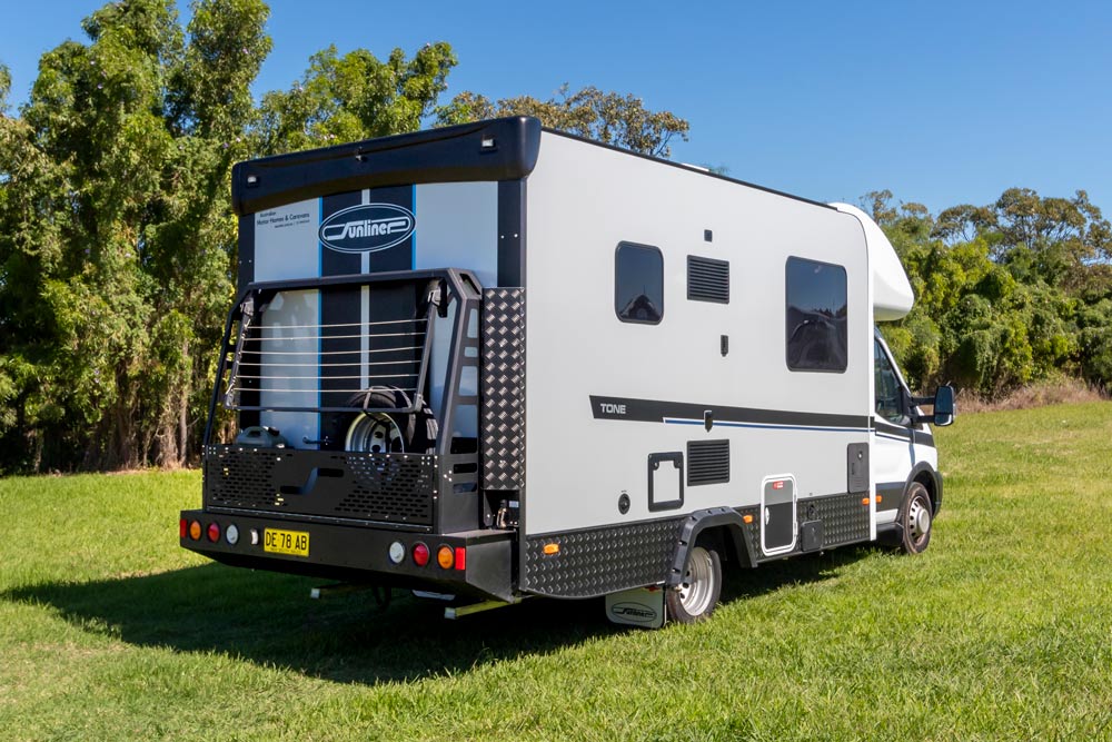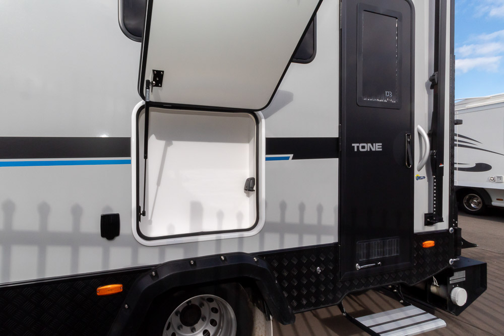 Externally, the TN441 continues to impress with a large roll-out awning, picnic table, external speakers and storage compartments. The electric rear utility bar is a standout feature, allowing access to a clothesline, jerry can holder, spare tyre and space for camping essentials such as firewood or tools.