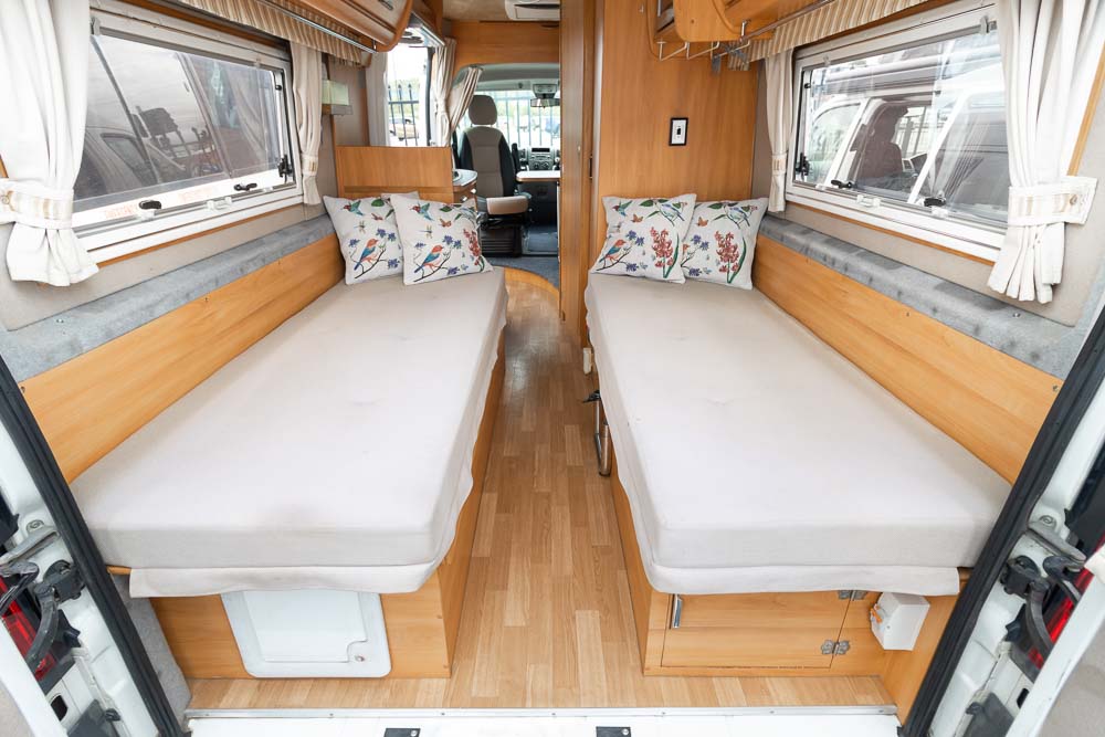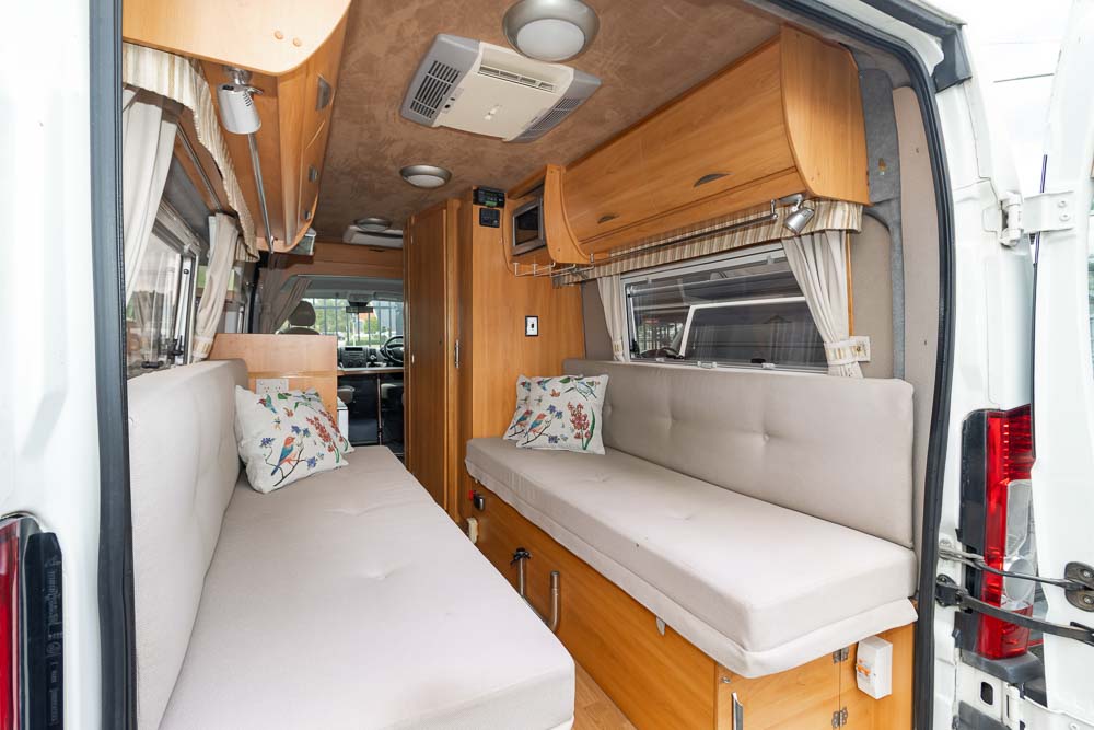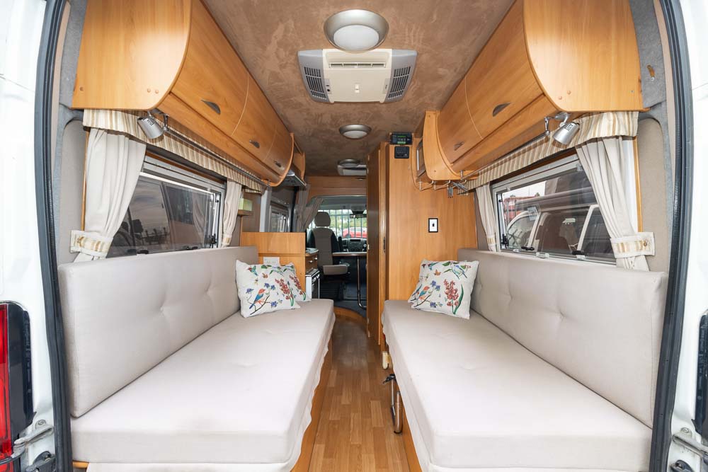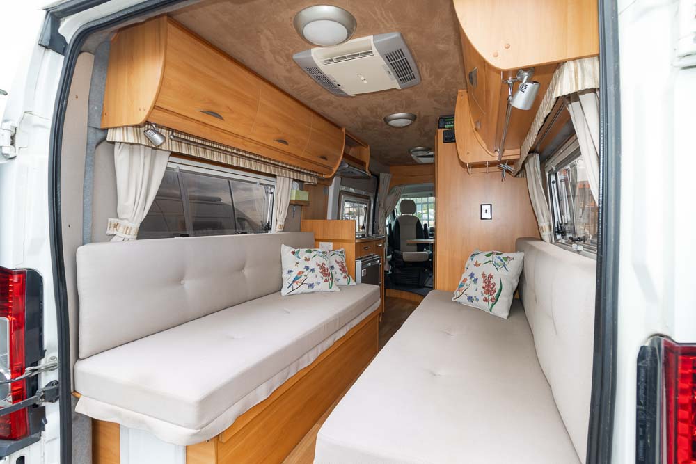 At the rear of the Vista, a second lounge provides excellent versatility. By day, it offers two opposing bench seats ideal for relaxing or reading. When it’s time to sleep, the space quickly converts into either single beds or a larger combined bed, giving you flexibility depending on how you travel.