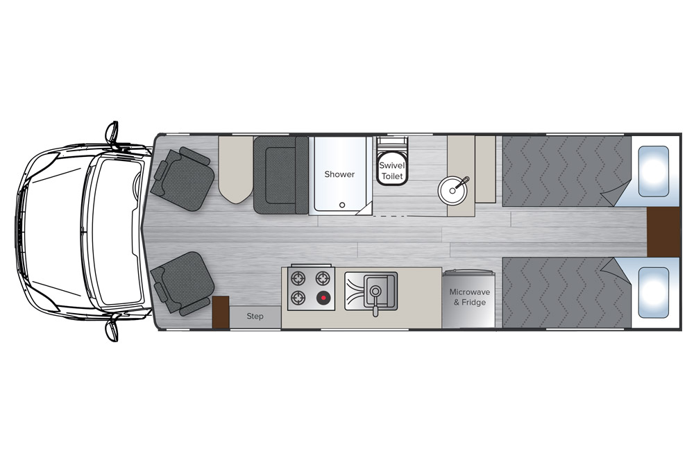 Available in two configurations – twin single beds or a luxurious island bed – the Beechworth adapts to different travel styles. Inside, a redesigned dinette with a swivel table, a well-equipped kitchen with a fold-down bench extension, and ample storage enhance both comfort and practicality, making it ideal for extended journeys.