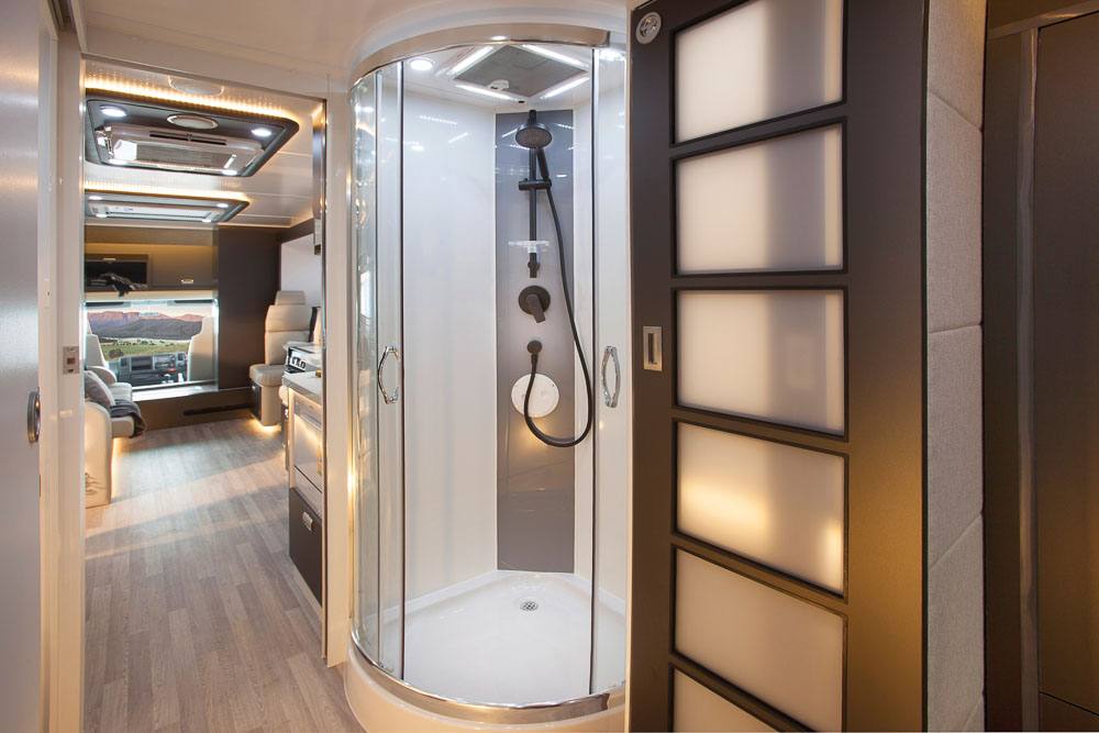 The Monte Carlo has the greatest luxury of all in an RV, space. The magic of the Monte Carlo is the space created by having four sliding walls. With just the push of a button, you can have your very own spacious apartment on wheels.